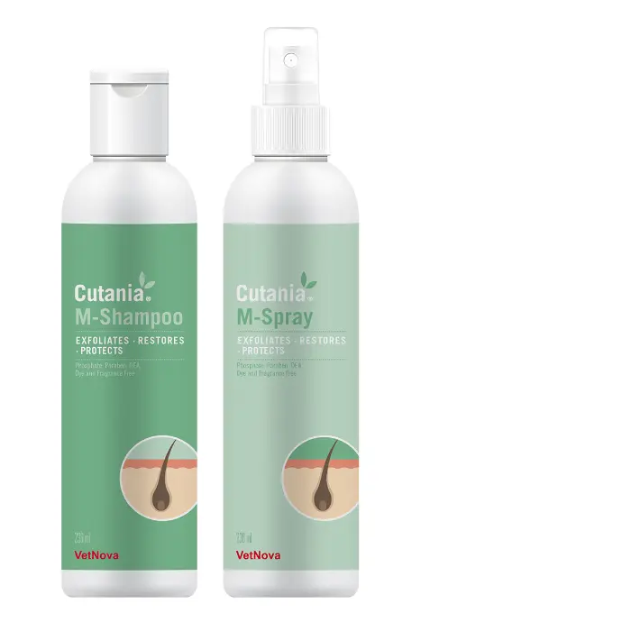 CUTANIA®-serien er mere end blot plejeprodukter – det er skræddersyet dermatologisk støtte til at forbedre livskvaliteten hos dyr med hudproblemer.