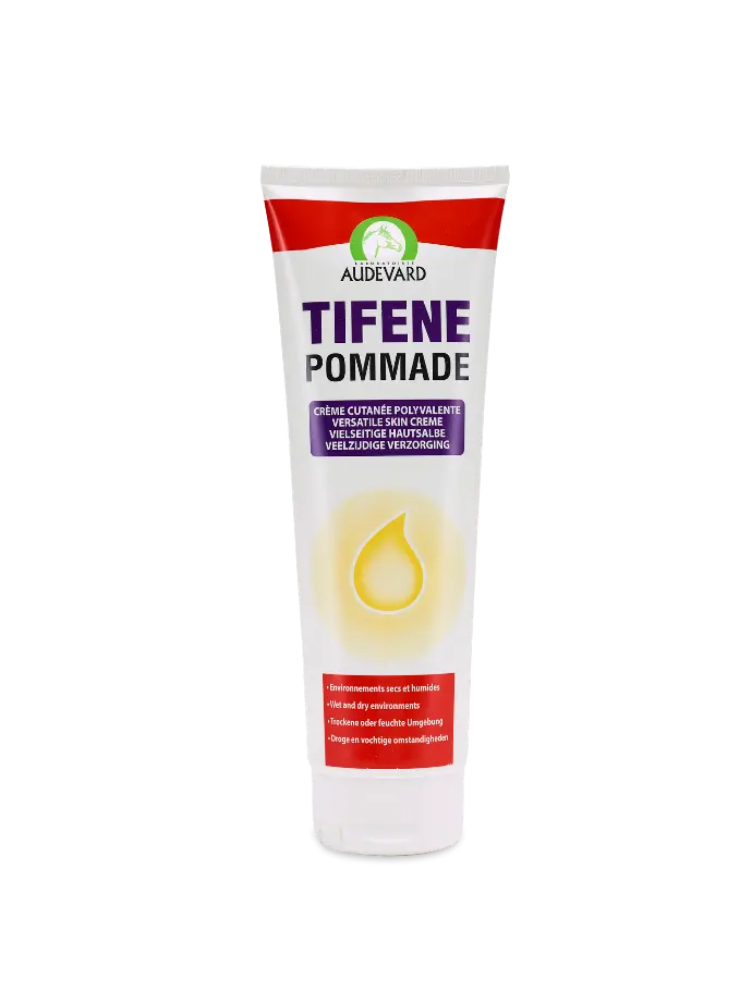 Tifene Pommade fra Audevard er en fed og alsidig creme til heste, der beskytter huden og hjælper med at bevare dens naturlige barrierefunktion.