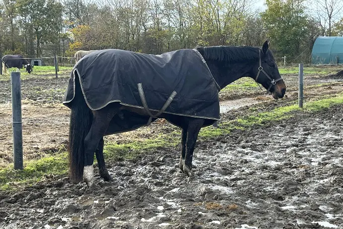 Den tynde, sårbare hud omkring hestens kodeled er særligt udsat i vådt og mudret terræn, hvor bevægelse og friktion yderligere belaster området.